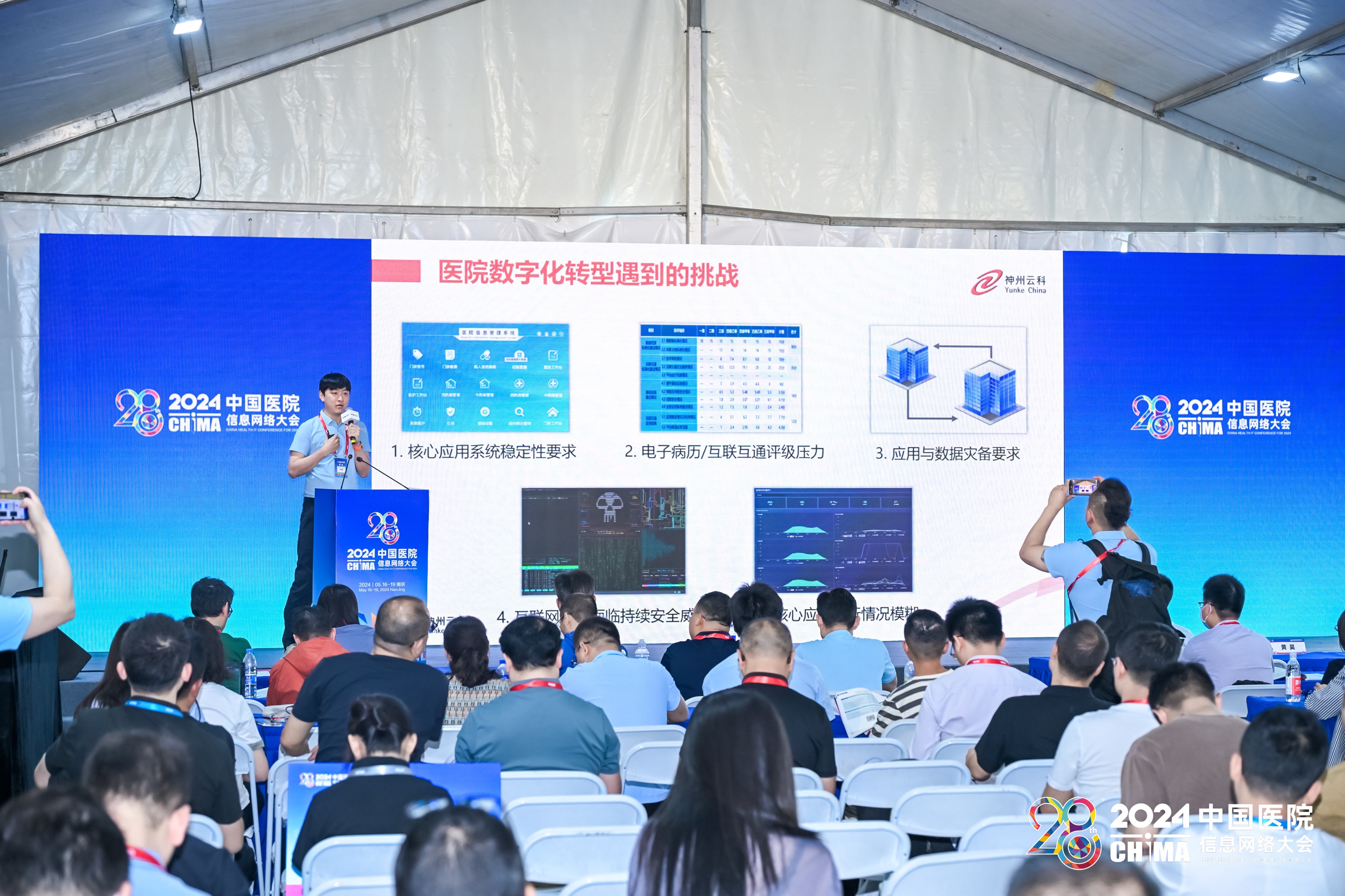 2024年5月17-19日,第28届中国医院网络信息大会(CHIMA2024)在南京圆满落幕。本次大会以新质生产力理论为指导,以深化应用,融合创新,用信息技术赋能医院高质量发展为主题,邀请国家卫生健康委相关司局领导、两院院士、国内外医疗卫生信息化领域知名专家学者、领军人物做主旨报告。在这场医疗信息化的年度盛会上,神州milan米兰会上携其“保障医院核心系统健康无虞”主题演讲精彩亮相,成为展会的一大亮点。